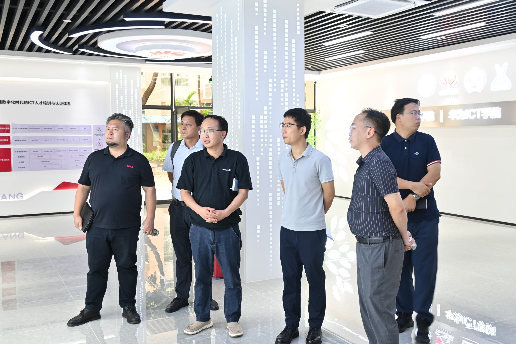 考察围绕深化产教融合展开,双方聚焦校企合作模式创新与人才培养机制优化。会上,广东白云学院电气与信息工程学院兼华为ICT学院副院长张永棠介绍了学院与讯方技术合作共建通信工程、计算机科学与技术、物联网工程等专业的实践路径,并分享了双师教学模式:校内教师与企业老师协同授课,课程体系融合行业前沿技术,并积极组织师生参与专业竞赛与华为师资培训。