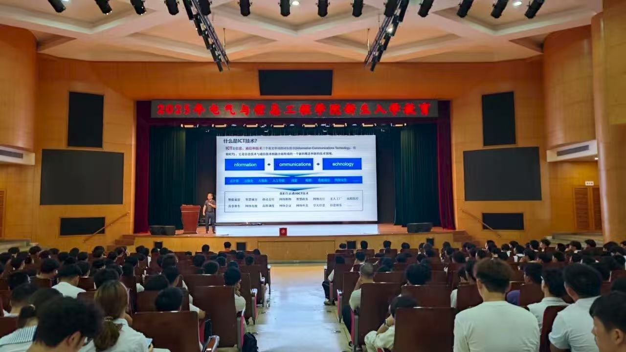 讲座伊始,会场内洋溢着新生的热情与期待。同学们怀揣对未来的憧憬,共同聆听这场关乎大学四年发展与规划的重要项目。王新磊经理为同学们作了精彩的开场分享。他从华为的全球创新实践入手,阐述了在万物互联的智能时代下ICT技术所扮演的关键角色,并介绍了华为如何通过ICT学院这一平台,将前沿的技术资源、课程体系与认证标准带入校园,赋能每一位有志于数字未来的学子。