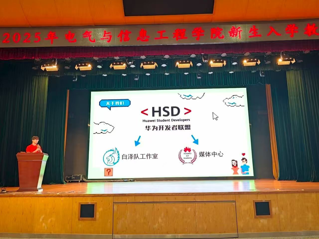 华为HSD校园联盟是华为人才生态中专属于学生的实践平台。校园大使兼联盟总负责人吴俊峰向2025级新生介绍了HSD的三大发展路径,阐明如何通过该平台实现从认知、参与到成长的进阶。他概述了HSD的整体架构,并指出学生可借此提前接触企业级资源、积累项目经验、组队参赛,甚至获得华为技术认证与就业推荐机会。