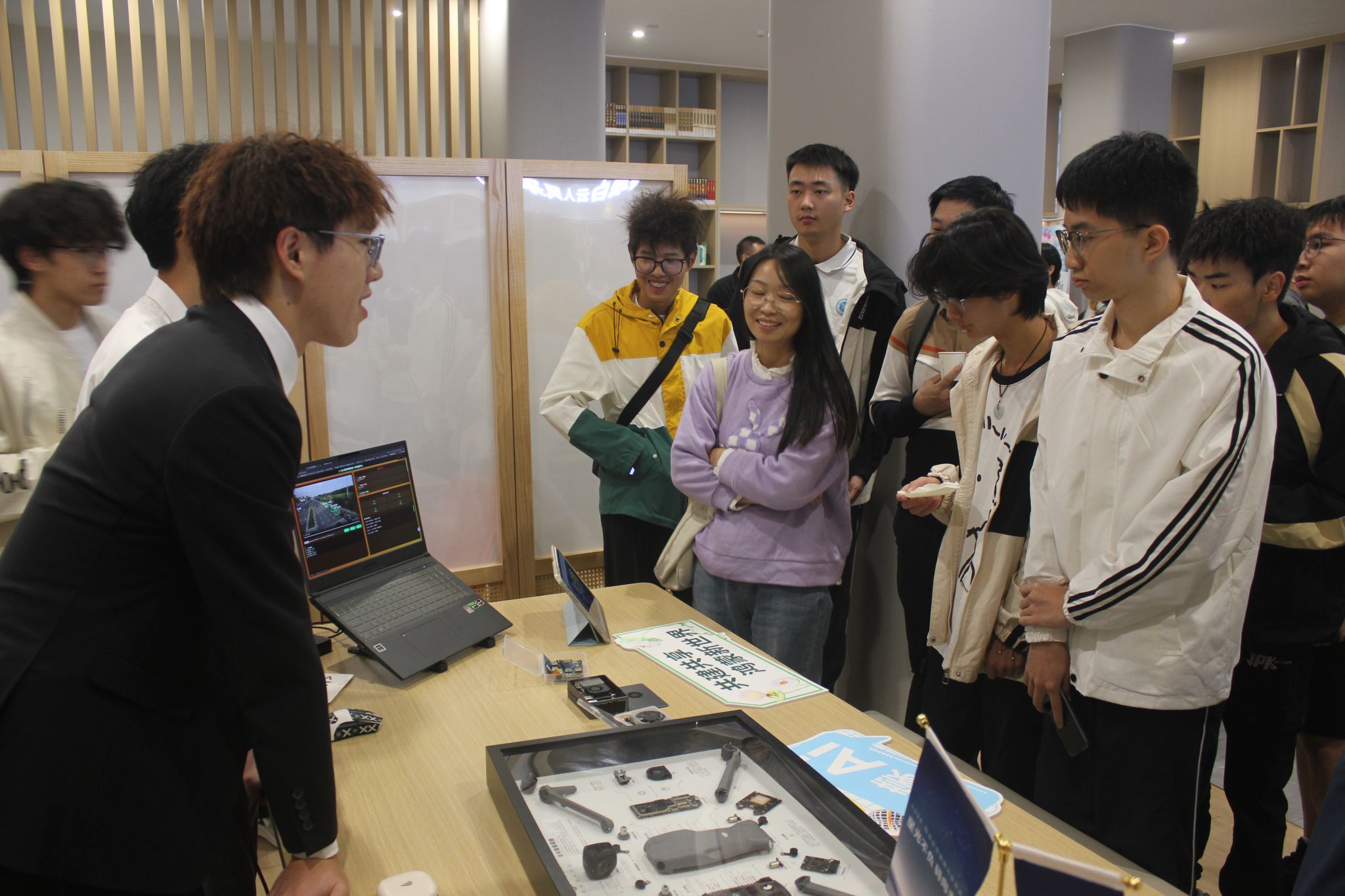 技术分享会结束后,师生及嘉宾移步文化活动中心开启 “项目展示交流会”。现场设四大项目路演摊位,团队通过展示、操作与讲解吸引学生驻足体验,为学生明晰专业方向提供助力。各位老师也深入各项目摊位,逐组了解架构、细节与亮点,结合经验针对难点、漏洞提供指导建议;茶歇区陈列饮品与点心,参与者手持茶点穿梭,或讨论设计、或交流困惑,最终,整场活动在轻松且专业的氛围中圆满收尾。