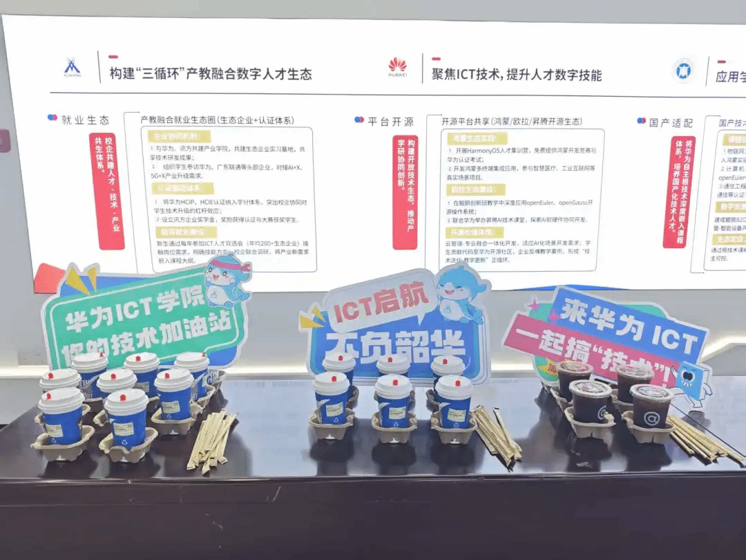 培训间隙,广东白云学院特别设置了茶歇环节,华为ICT学院实验室展厅布置得温馨惬意,香醇咖啡、精致茶点相伴,老师们暂别密集的技术学习,围坐交流培训中的实操心得。