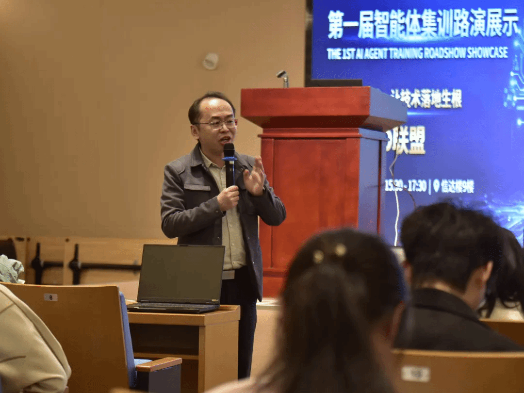 致辞结束后,路演展示环节正式启动。11 支参赛队伍围绕智能体作品的开发理念、技术架构、核心功能及应用场景展开专业呈现。评委团针对每支队伍的展示内容,从技术可行性、行业适配性、创新价值等维度进行专业提问与精准点评,既肯定了同学们在模块化设计、技术落地等方面的亮点,也指出了优化方向,为学生提供了极具针对性的指导建议,现场交流氛围浓厚。
