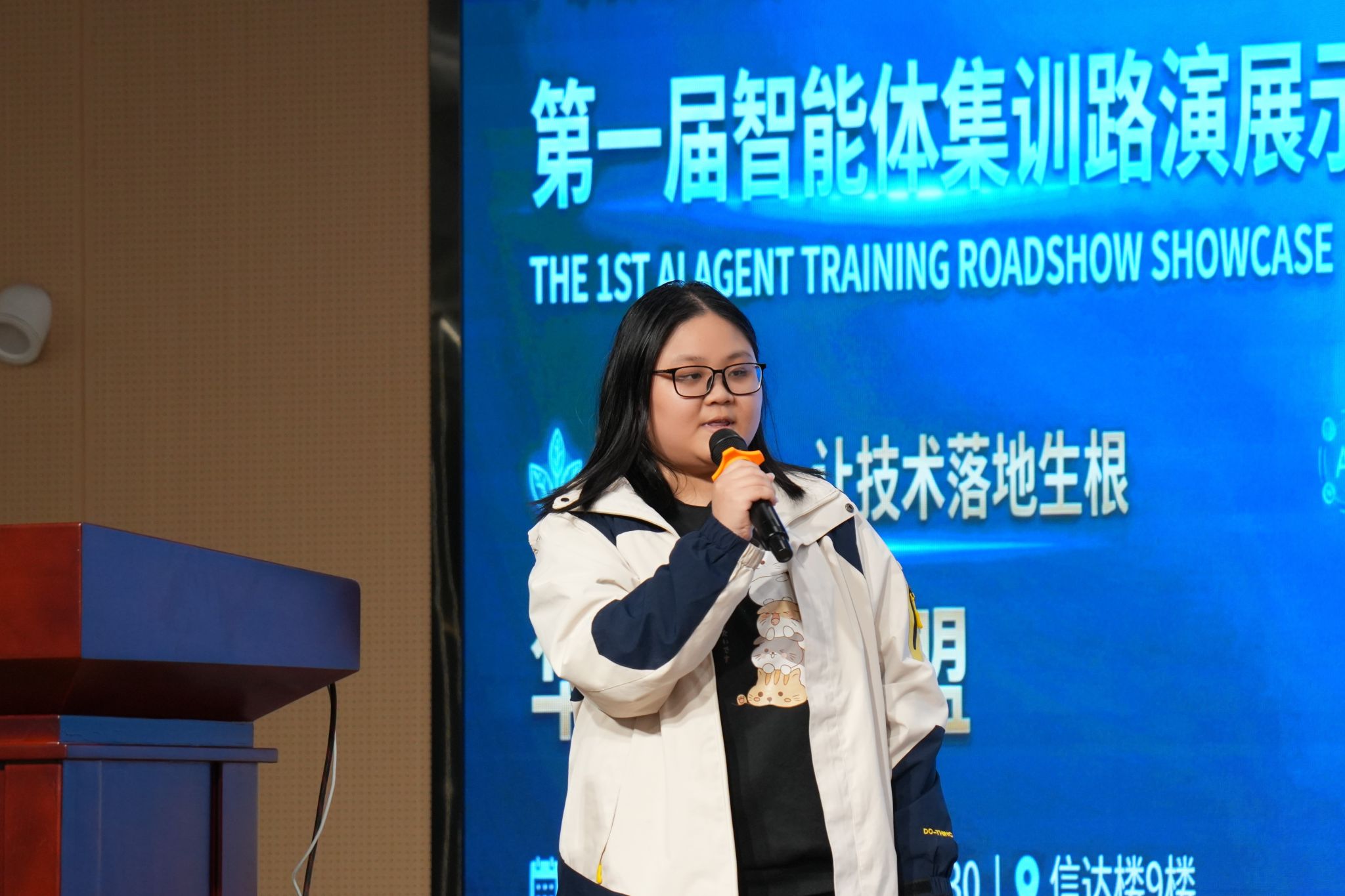 紧接着,王新磊院长进行发言。他进一步呼应张院长的期许,同时结合行业发展现状,强调当前智能技术领域前景广阔、高素质人才需求迫切。王院长提到,华为 ICT 学院正通过 “理论 + 实践 + 认证” 一体化培养体系,将人工智能大模型轻量化、低成本部署到实验教学中,而本次路演正是这一创新培养模式的成果集中检验。他寄语同学们以此次路演为契机,持续深耕智能体技术领域,在实战中打磨专业本领、积累行业经验,努力成长为适配产业发展需求的高素质技术人才,为行业创新发展注入青春动能。
