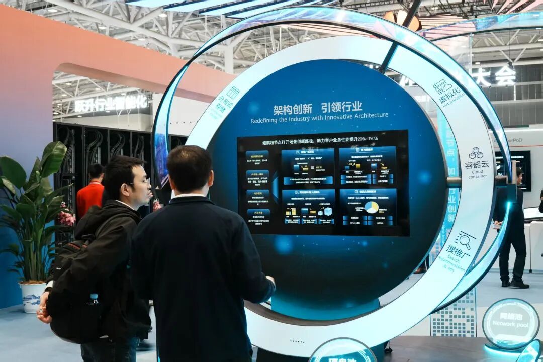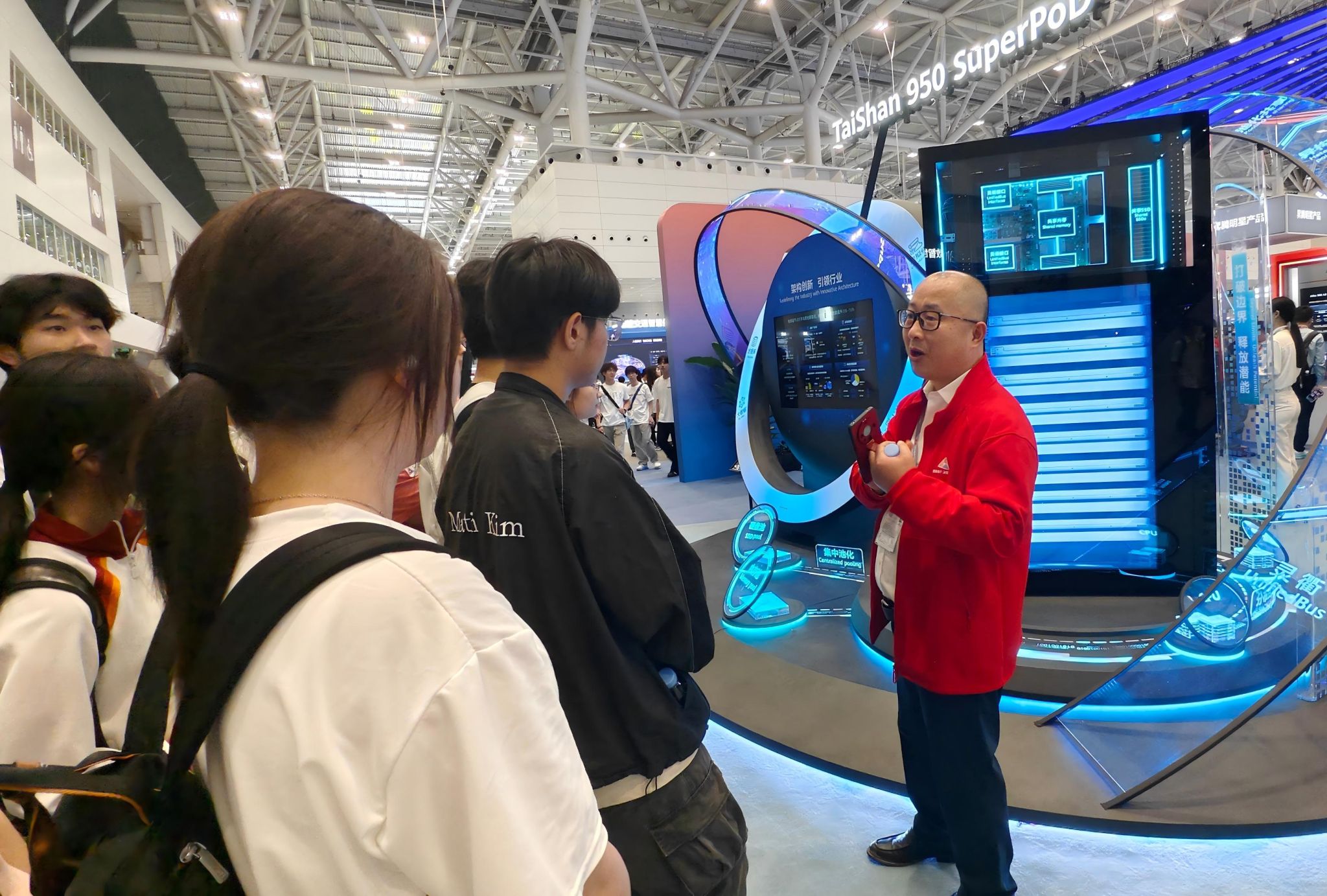 产业区聚焦算力与网络基础设施,华为联合鲲鹏、昇腾等核心生态伙伴,集中展示全栈国产化算力体系与高效智能的网络解决方案,呈现从芯片、服务器到操作系统的完整技术链条,让同学们直观感受自主可控技术对数字经济的核心支撑作用。