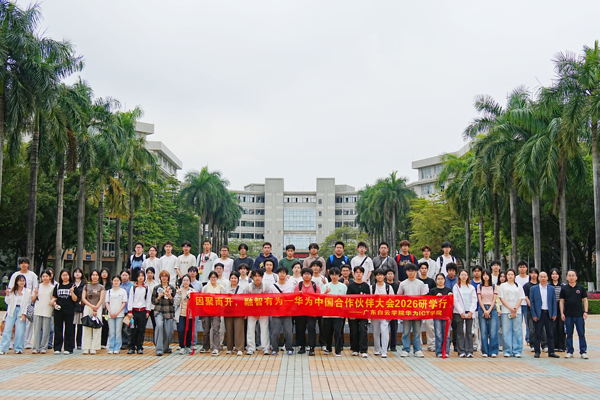 为深化校企协同育人、推动产教深度融合,2026 年 3 月 20 日,广东白云学院华为 ICT 学院组织学生代表赴深圳国际会展中心,参加华为中国合作伙伴大会 2026 研学实践活动。本次活动由华为 ICT 学院副院长张永棠、计算机科学与技术专业主任陈小文,以及校企就业导师陈诗莹、劳莉华等多位老师带队,学院 24 级、25 级学生代表共同参与,师生共计 82 人。